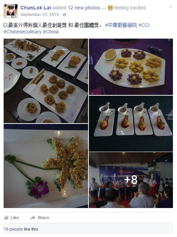 Sous Chef, Research & Development, Cathay Pacific Catering Services Graduate of Intermediate Certificate in Chinese Cuisine